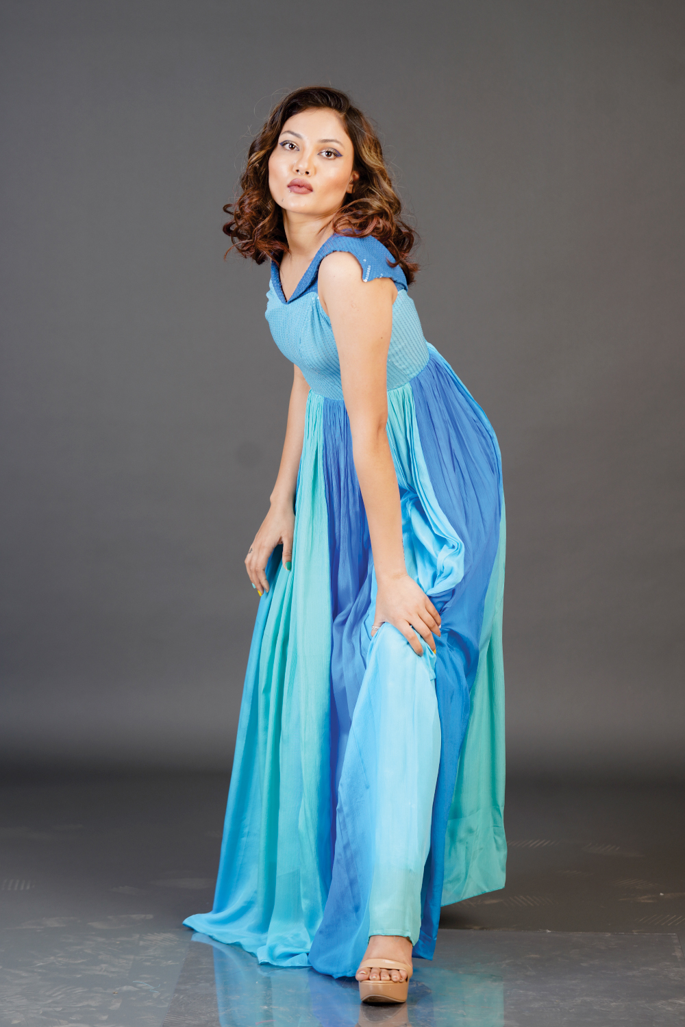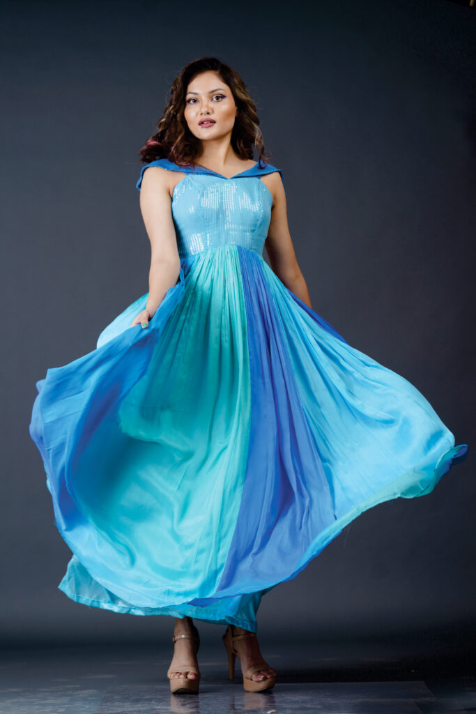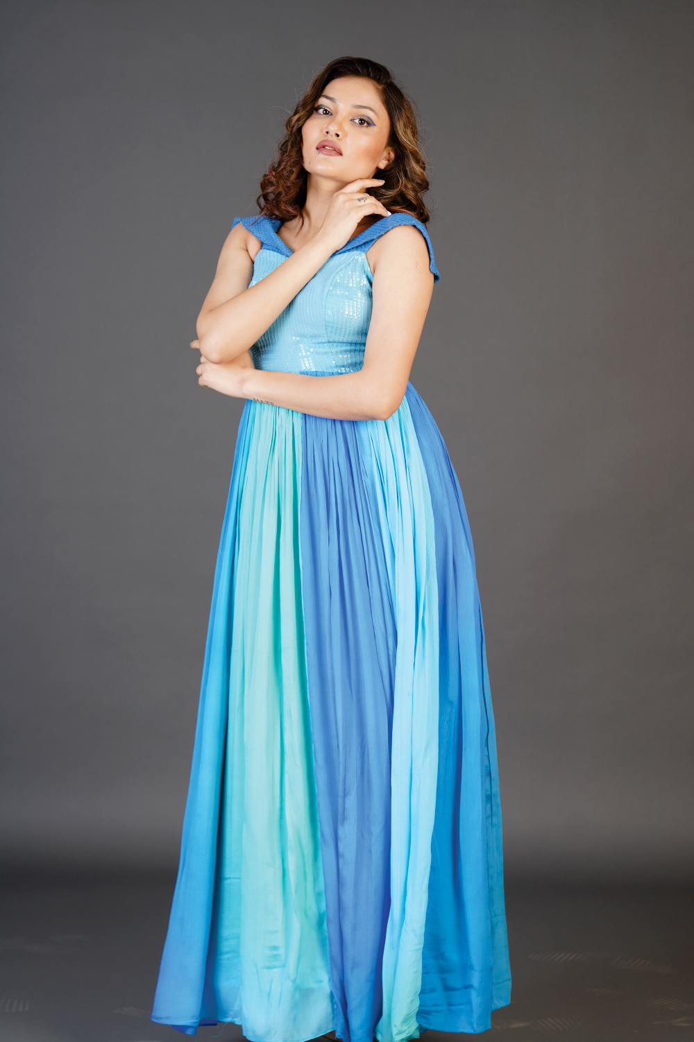 Circular flaired Cold shoulder dress