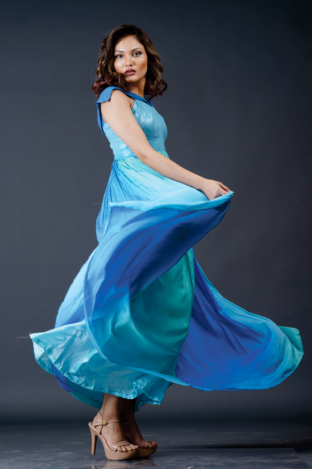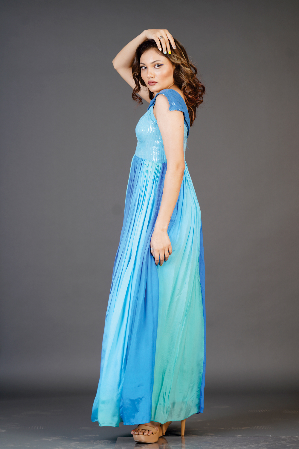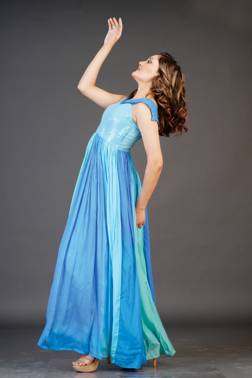 Circular flaired Cold shoulder dress