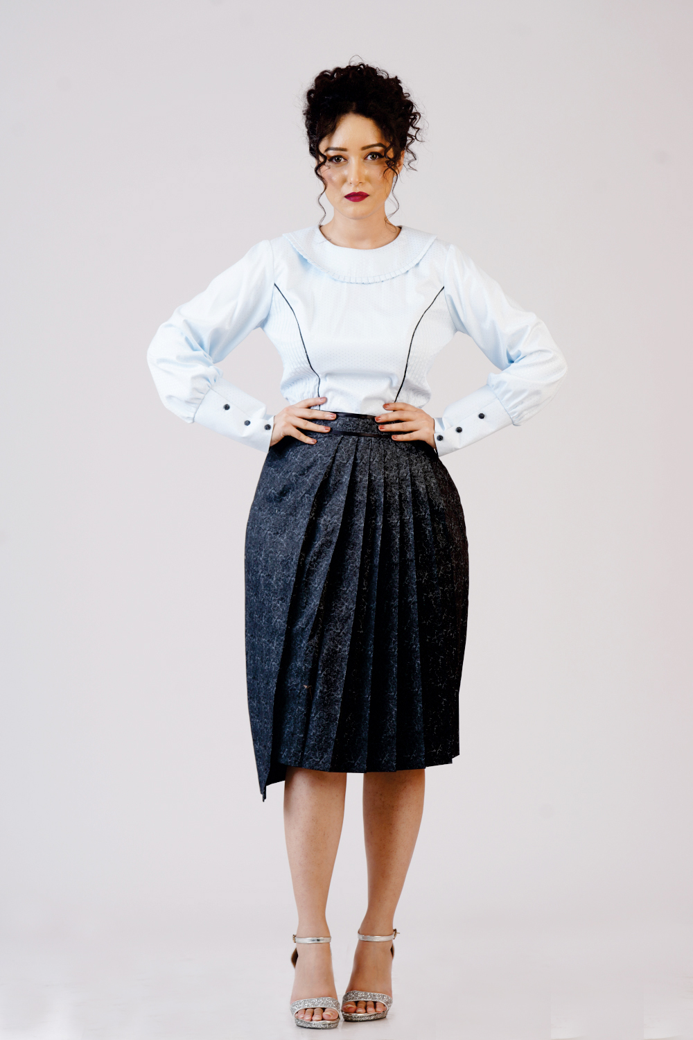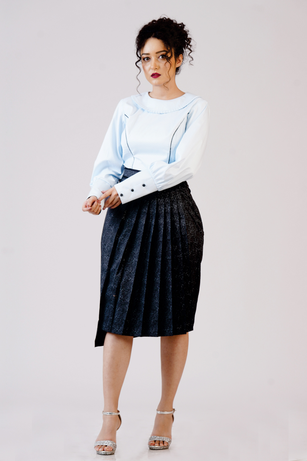 Collared top with Pleated skirt