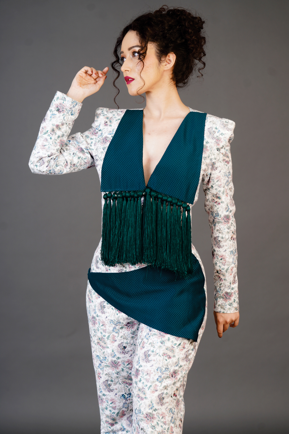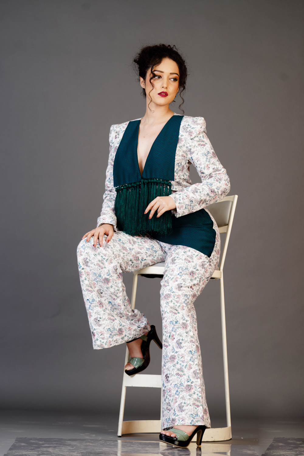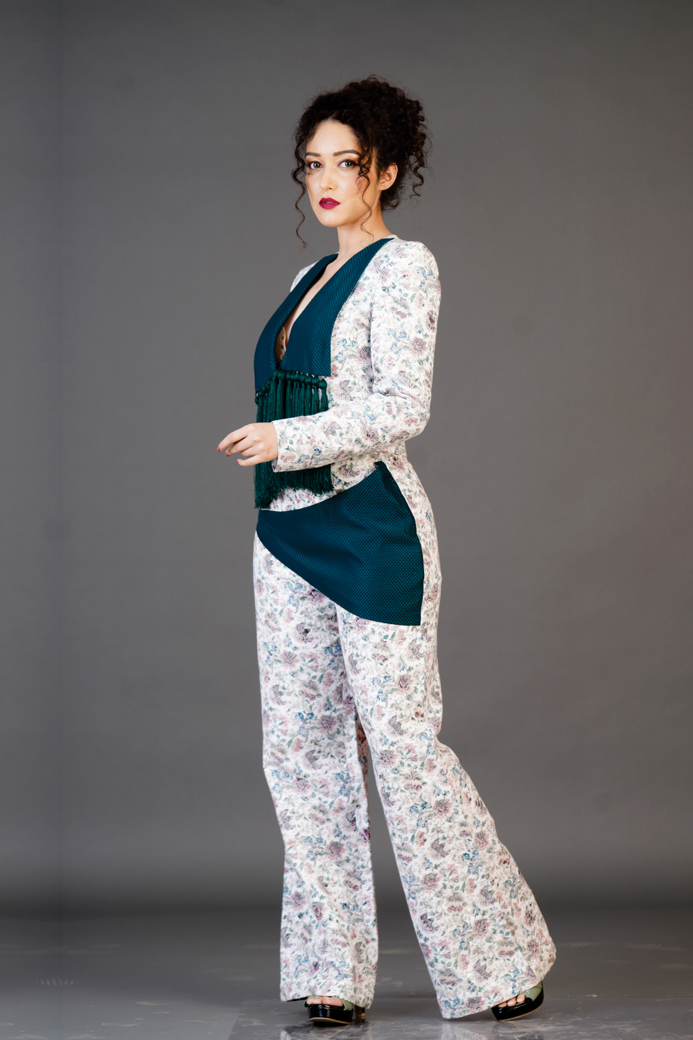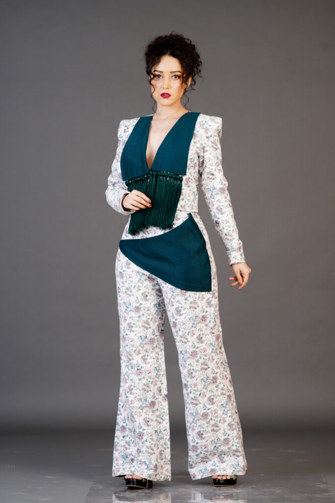 Creative collar coat with trouser
