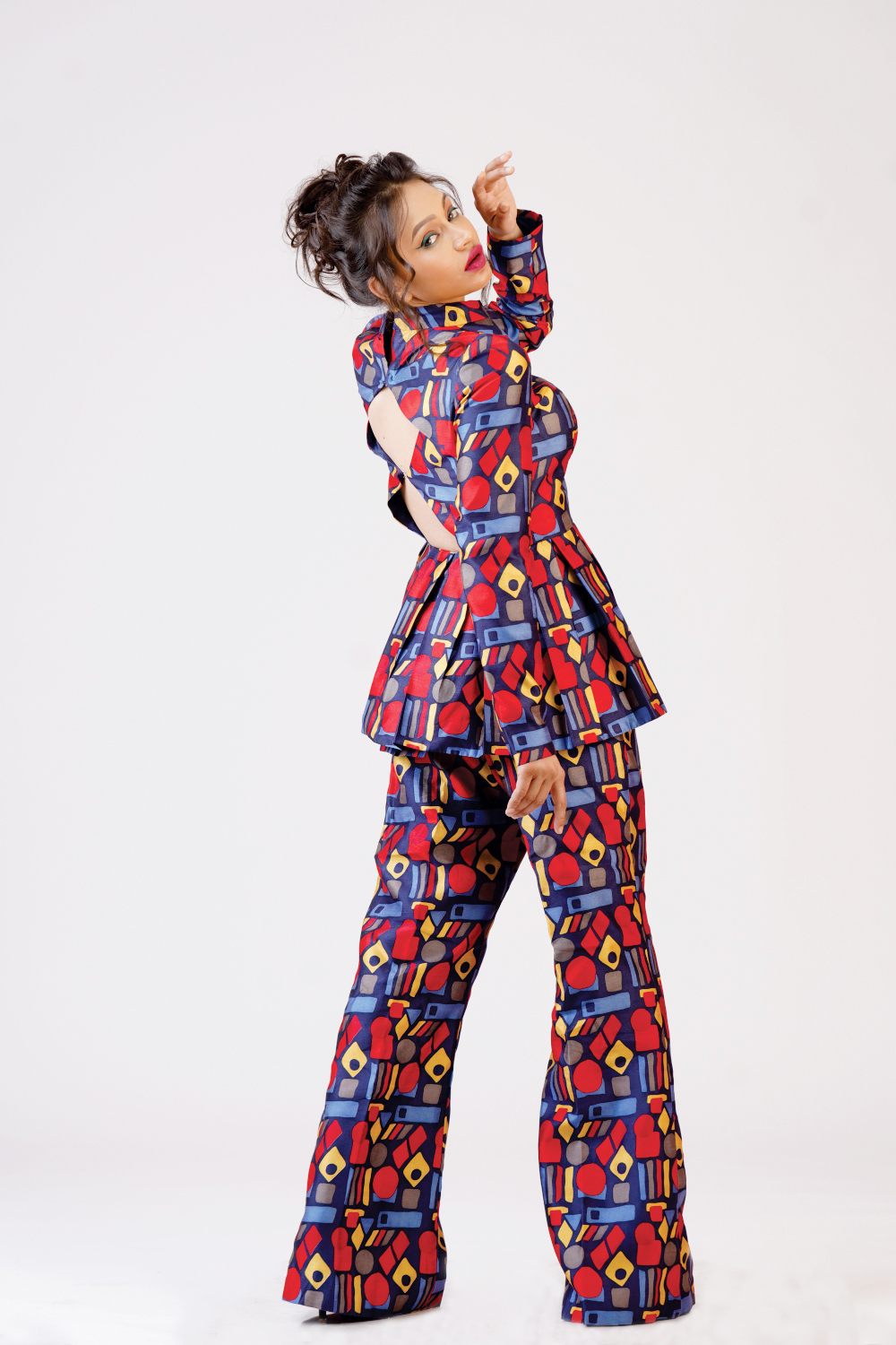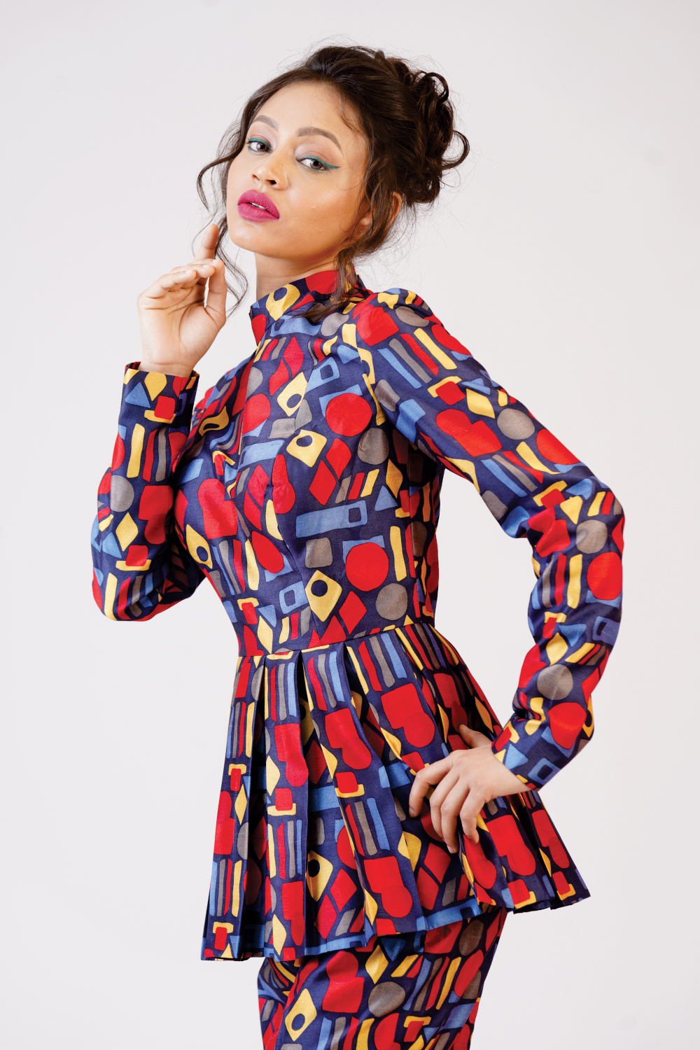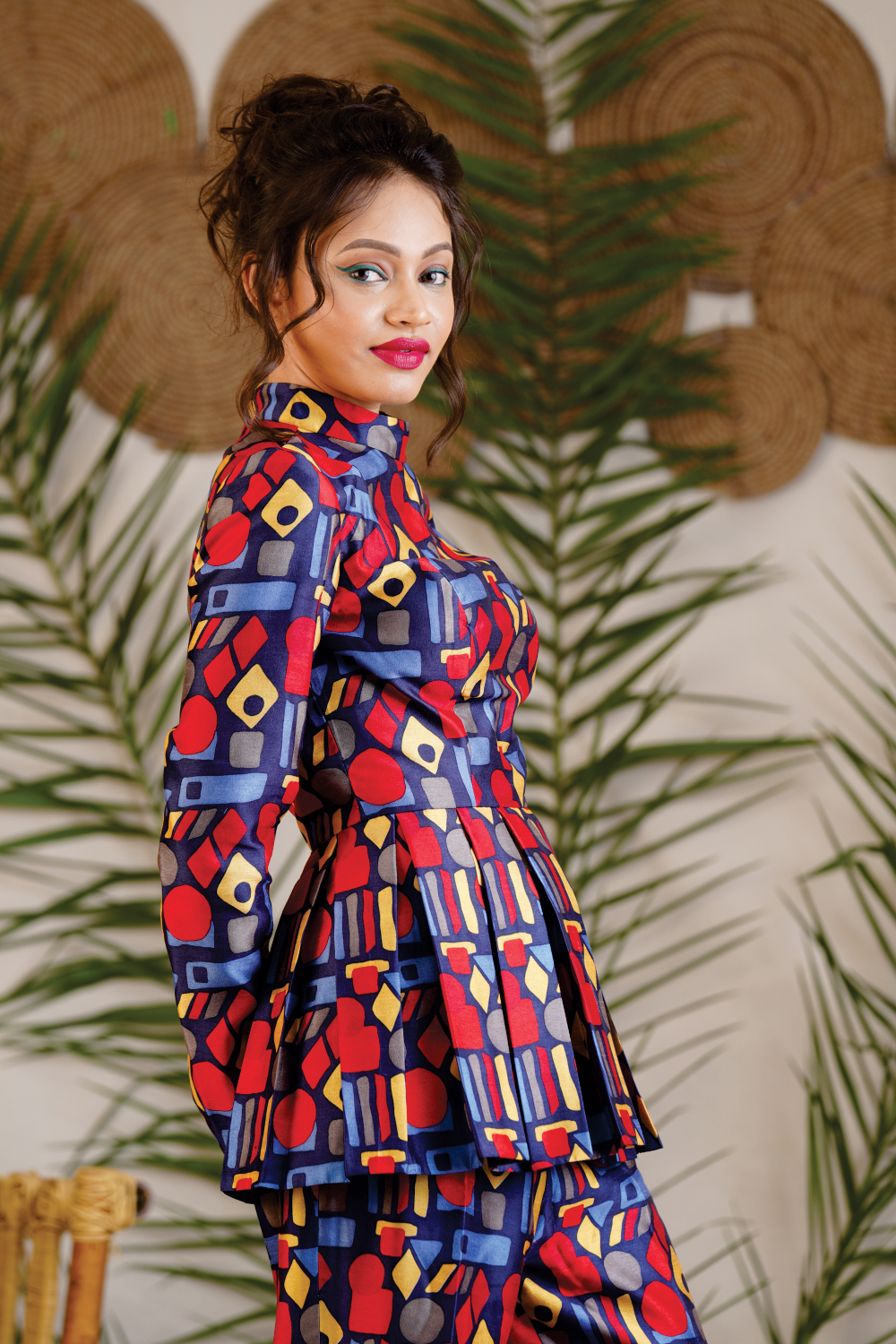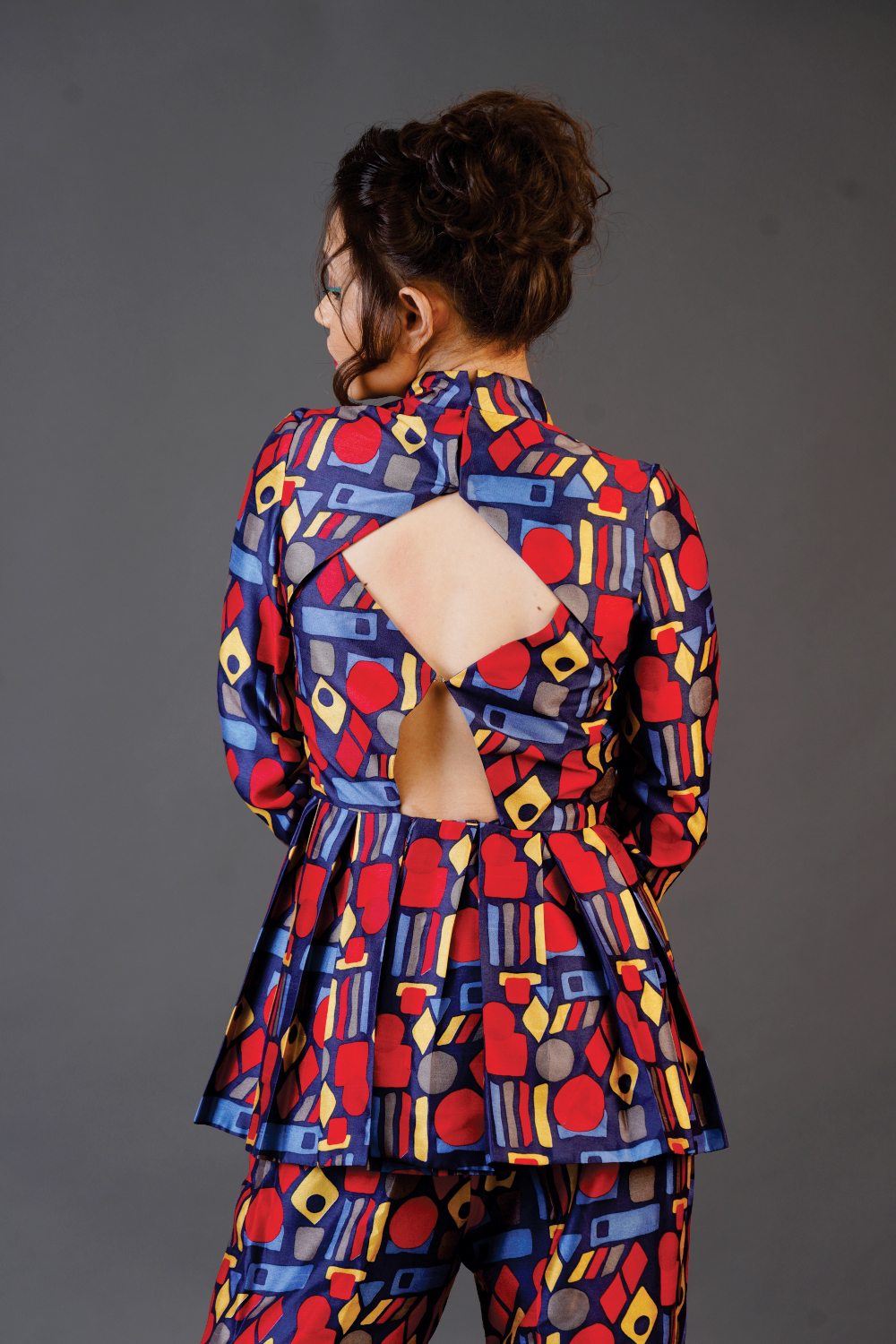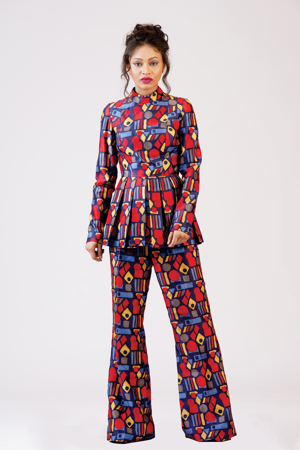 Creative corporate Jacket shirt with pleated waist attachment added with flaired trouser