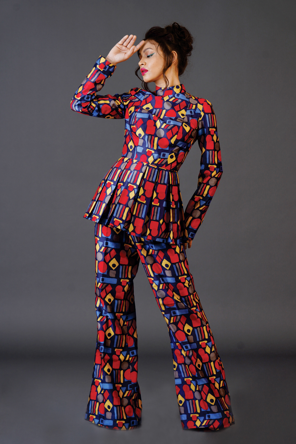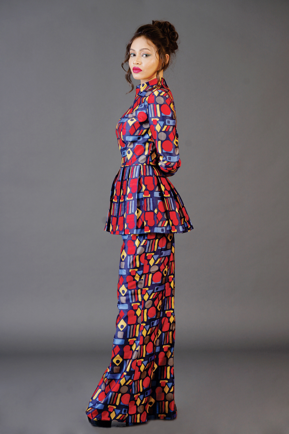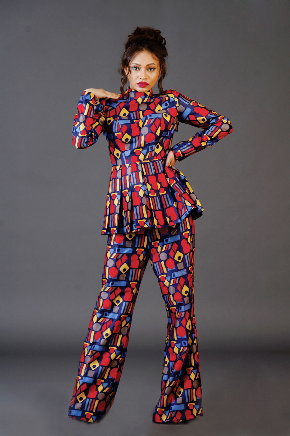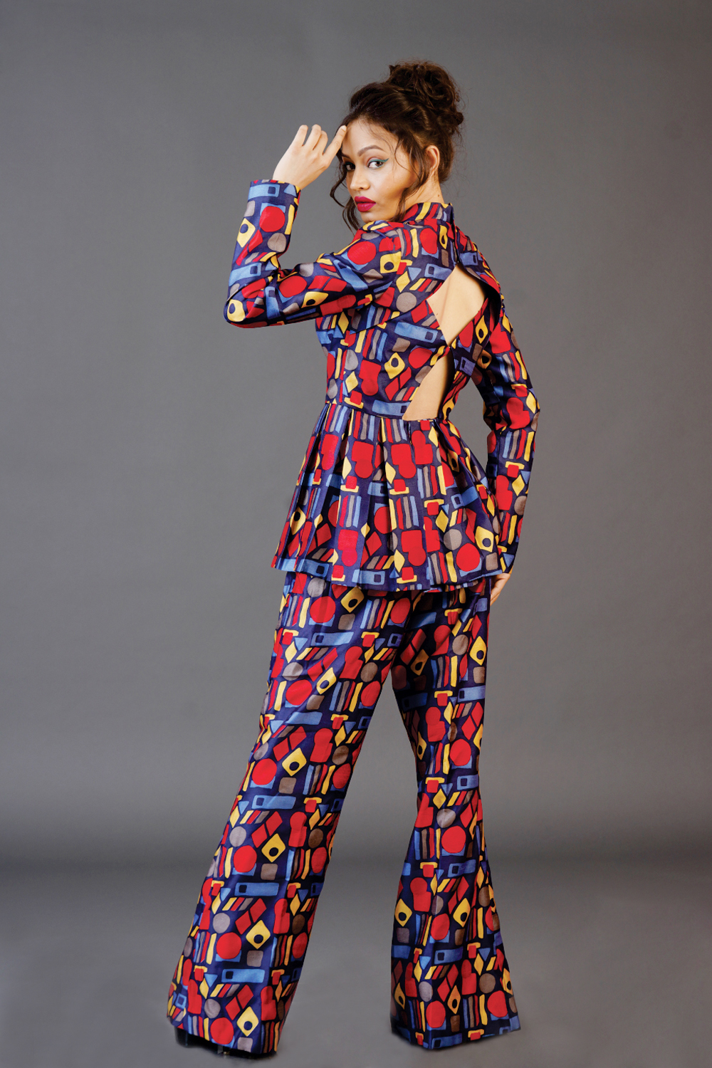 Creative corporate Jacket shirt with pleated waist attachment added with flaired trouser