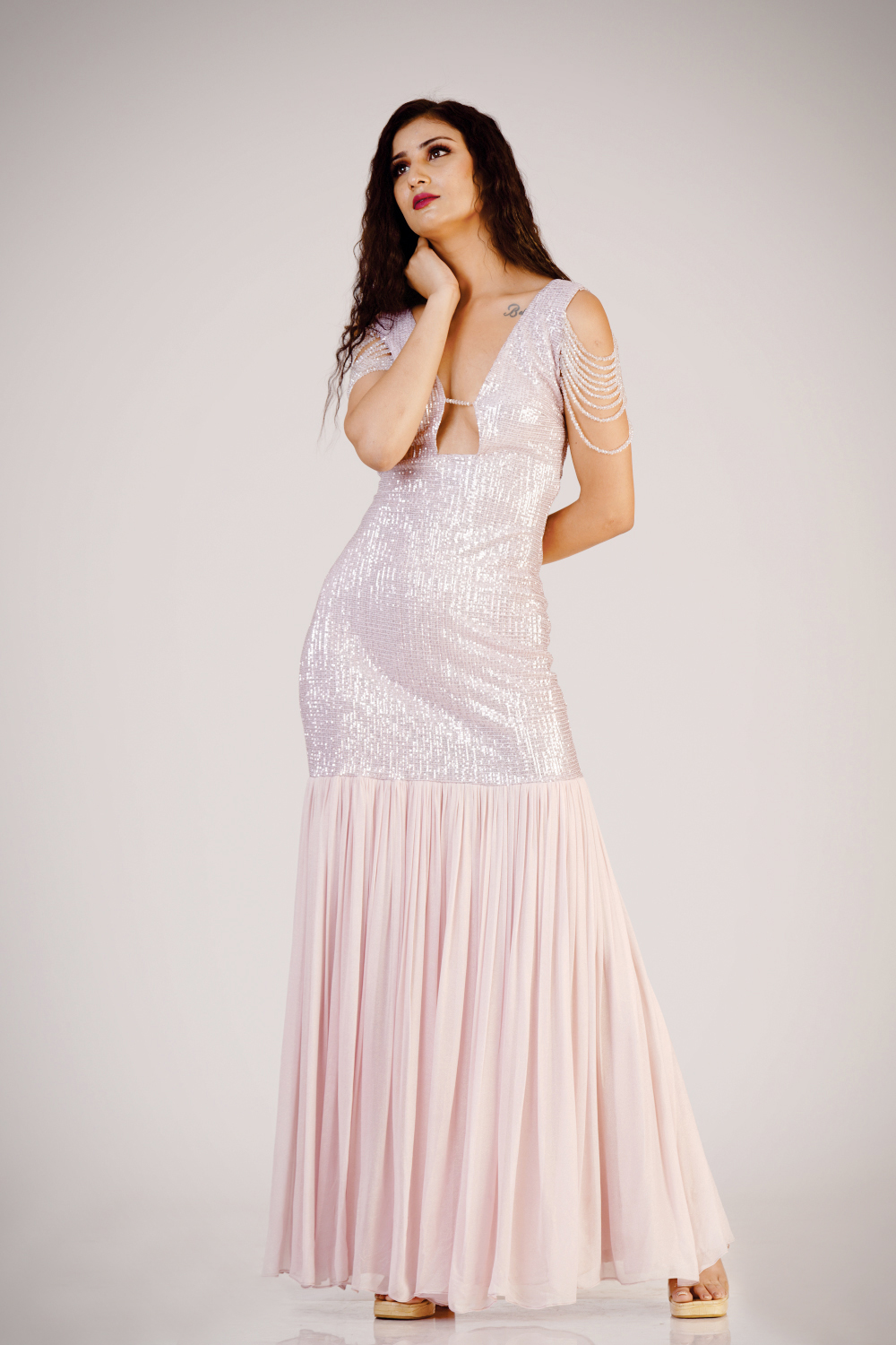 Plunge neck mermaid gown