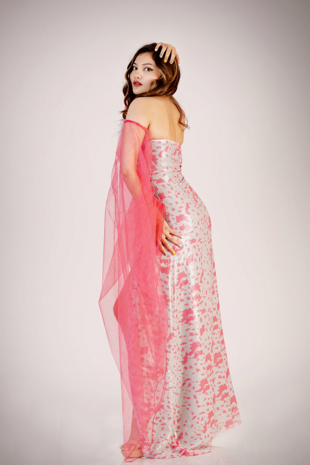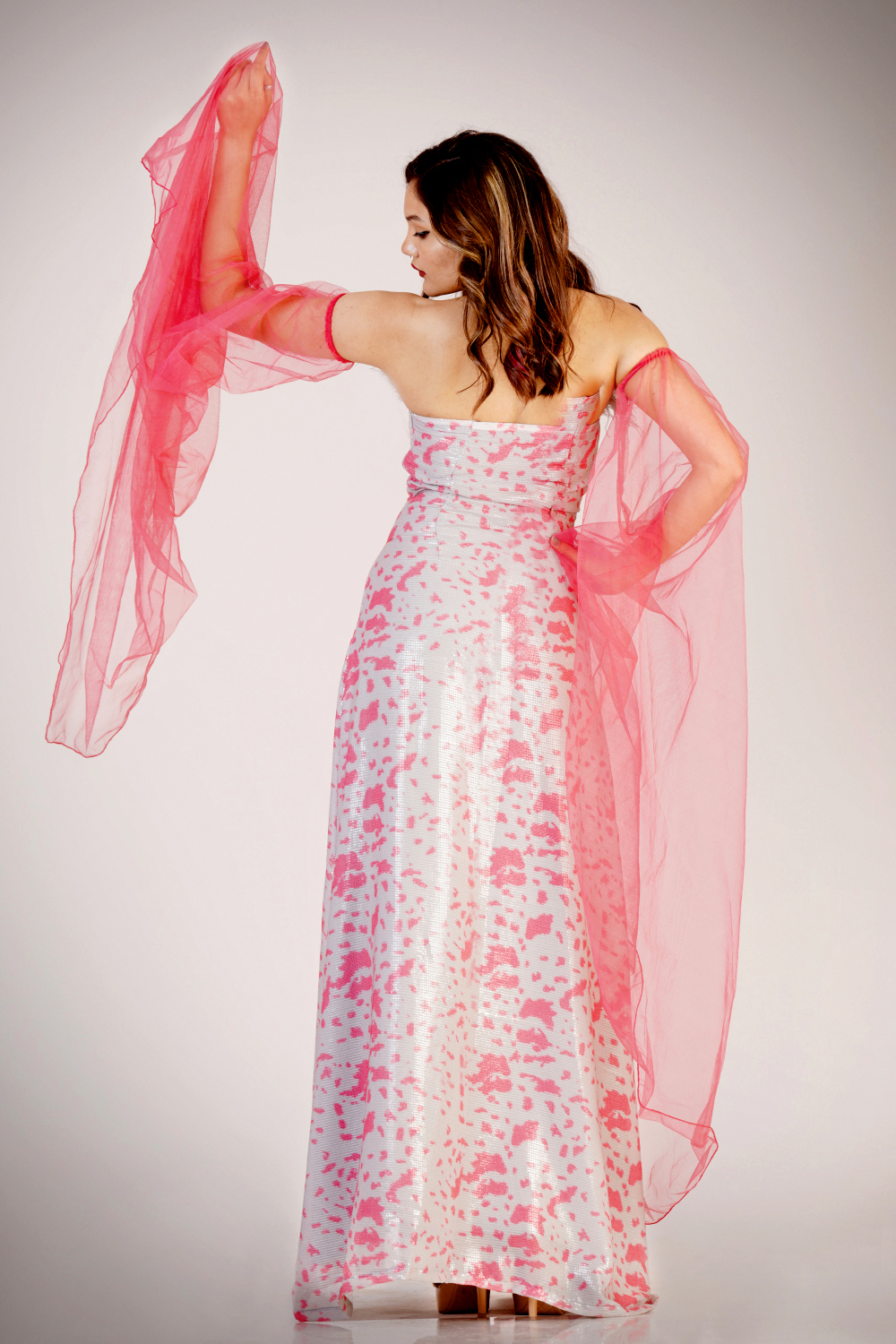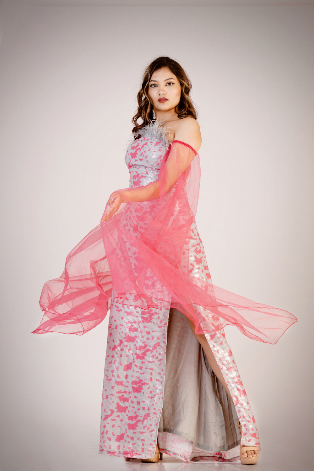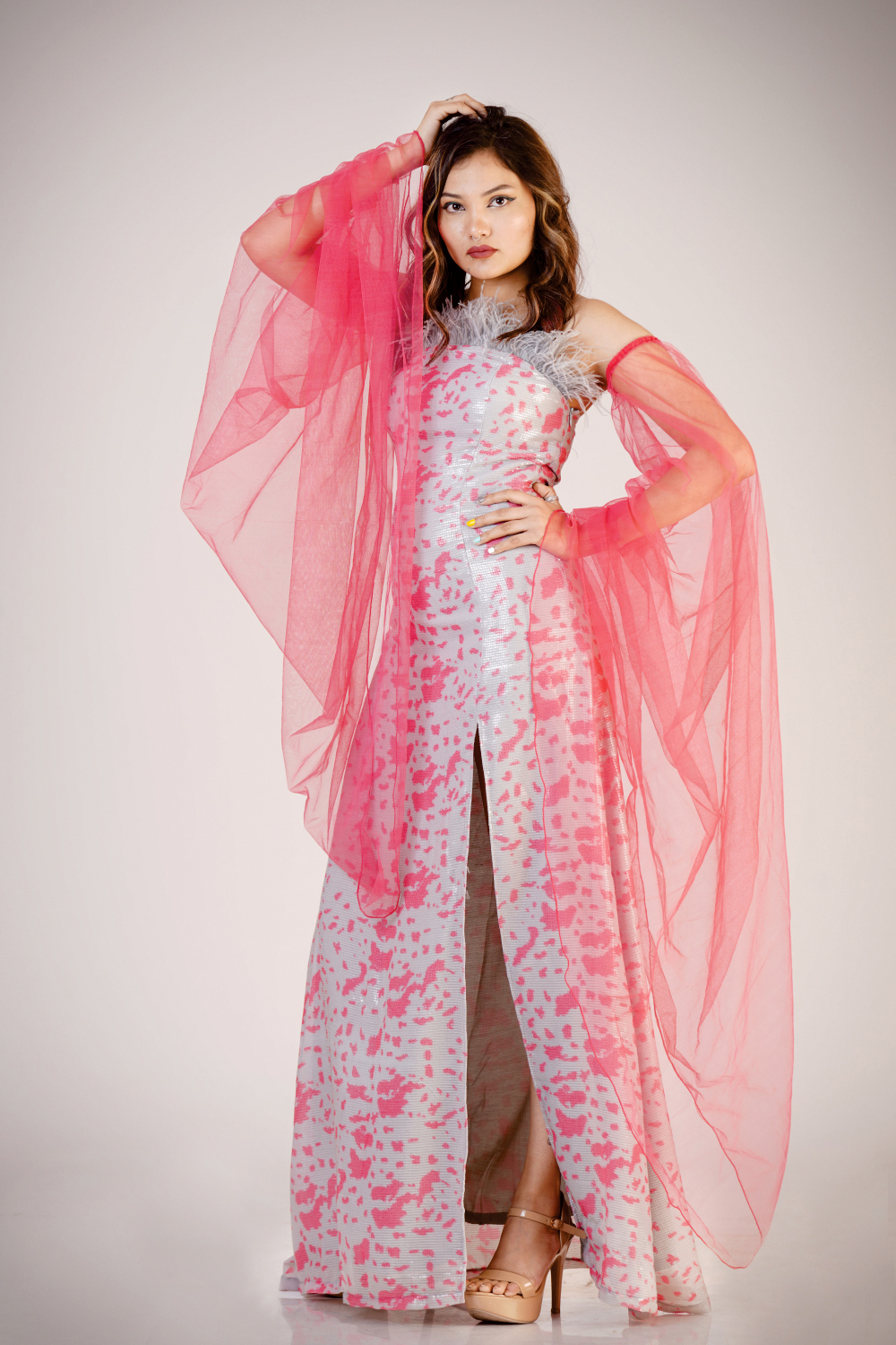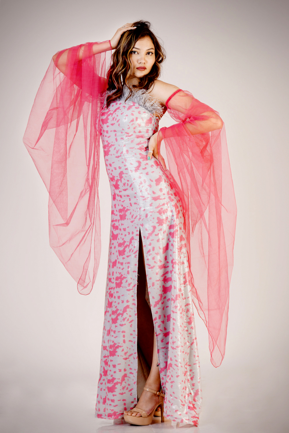 Slit Gown with detachable exegerated sleeves