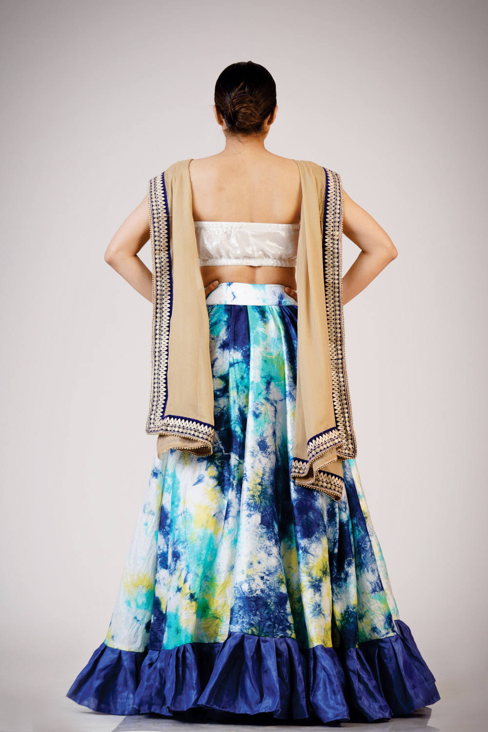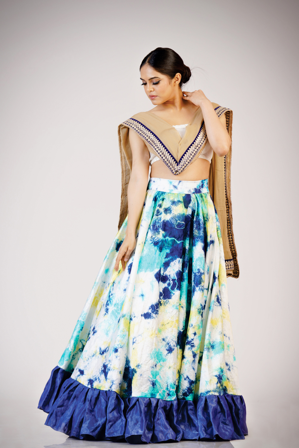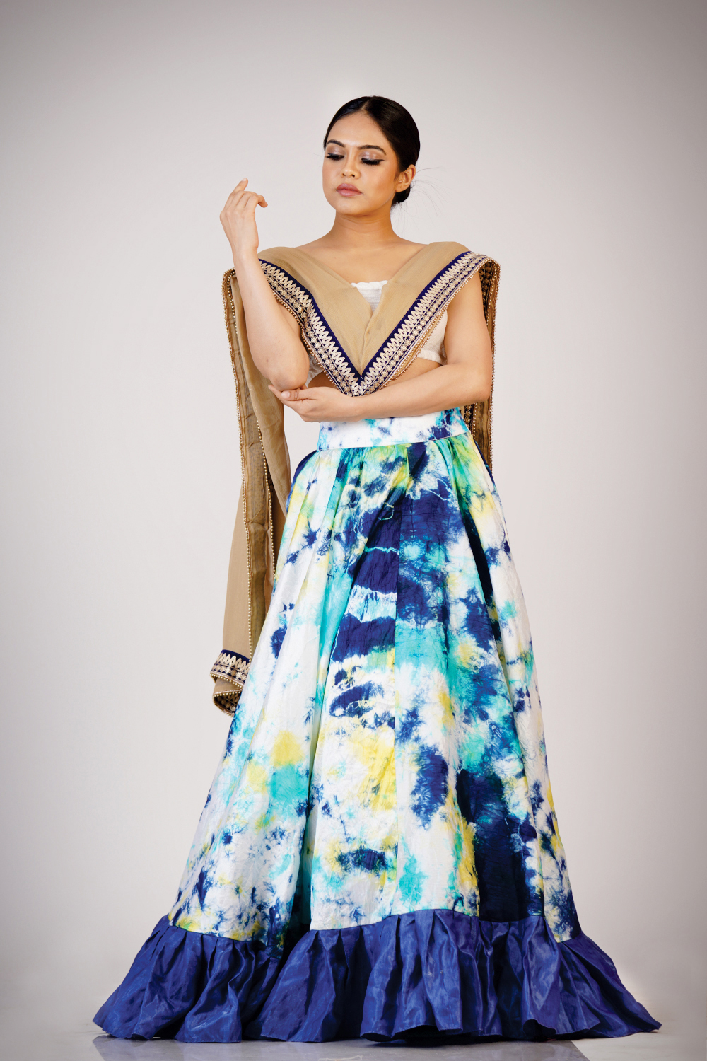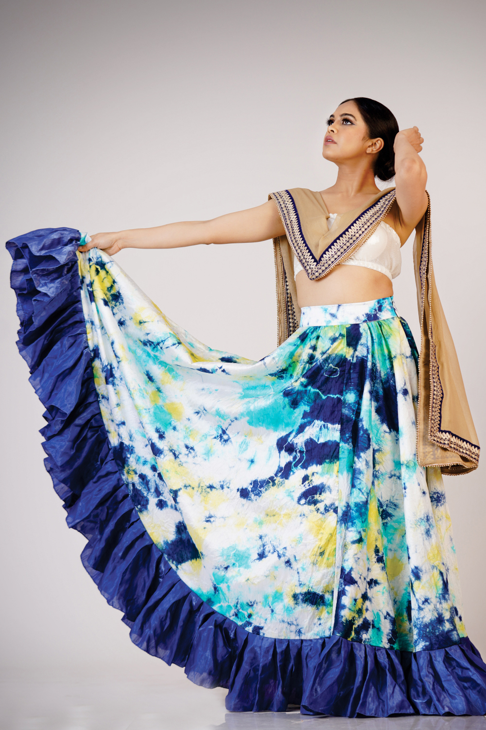 Tie and dye Ruffel bordered Lehnga with crop choli