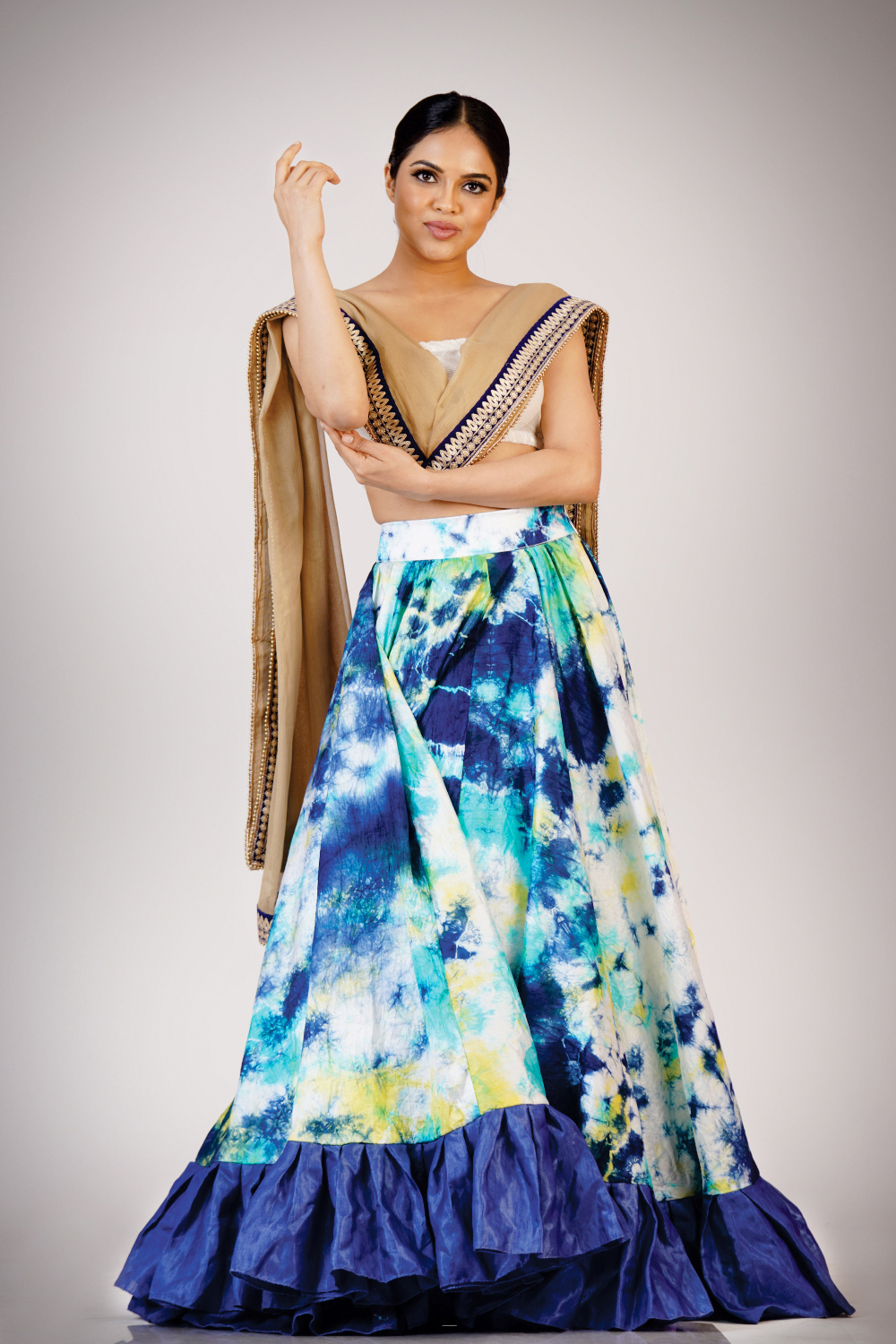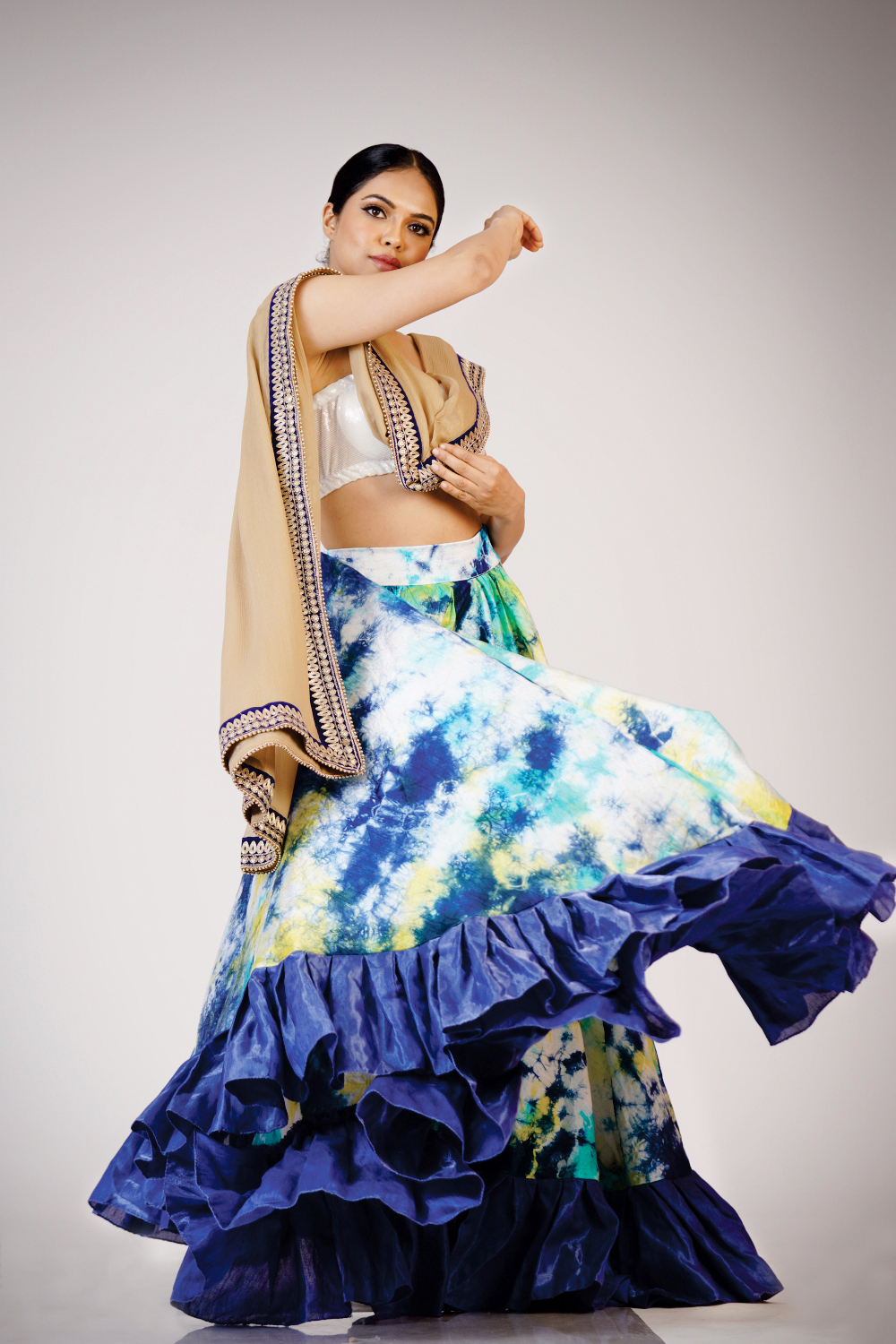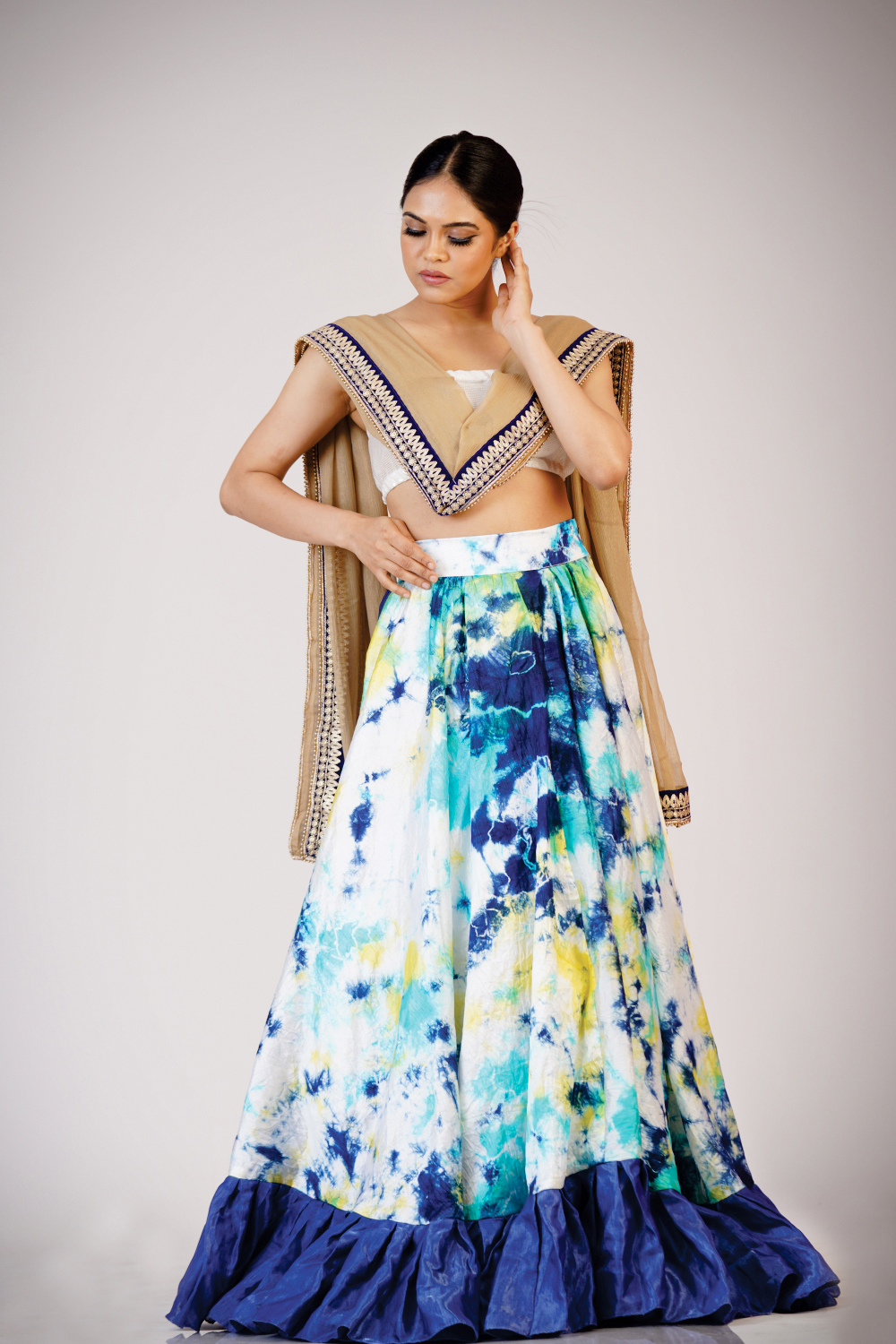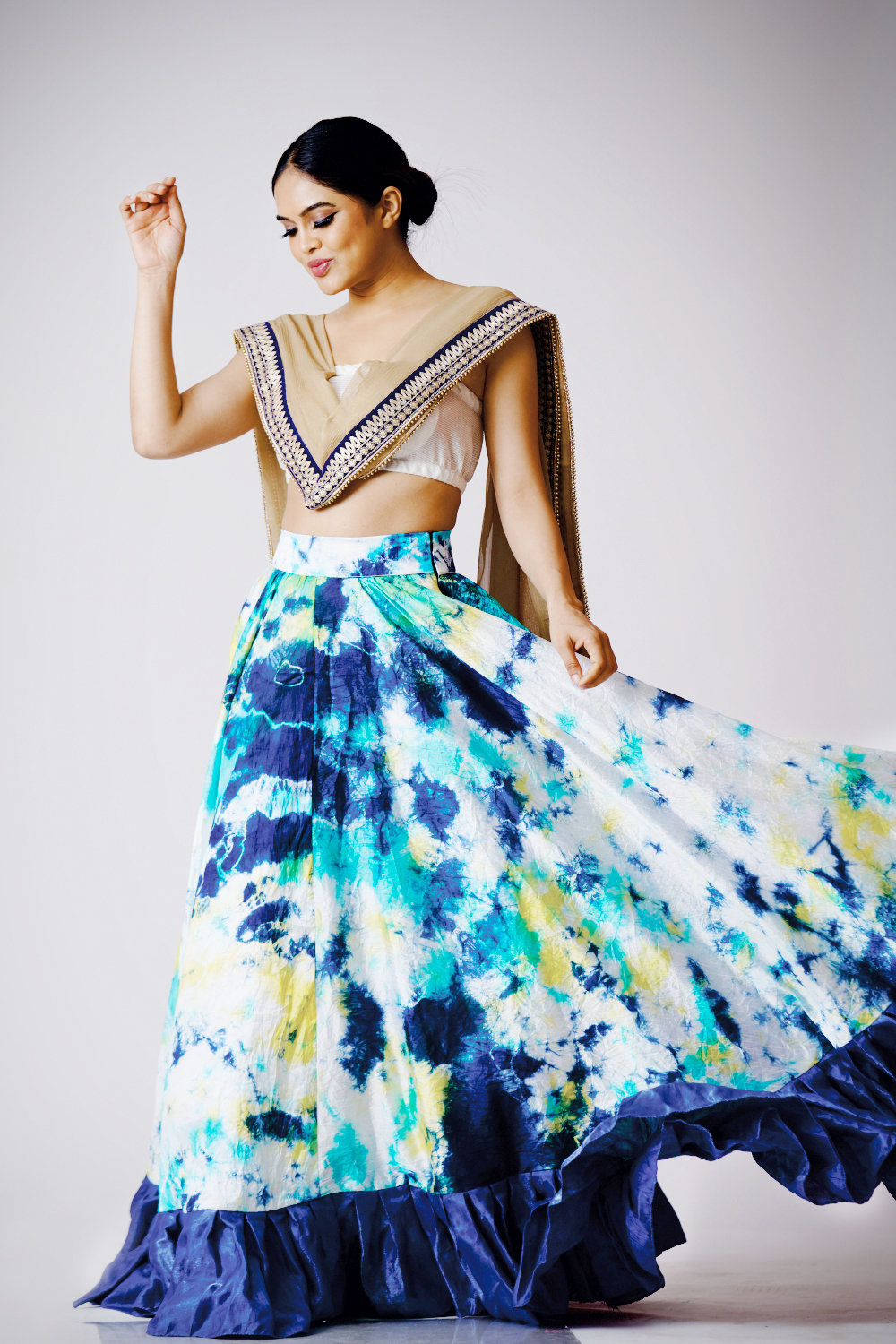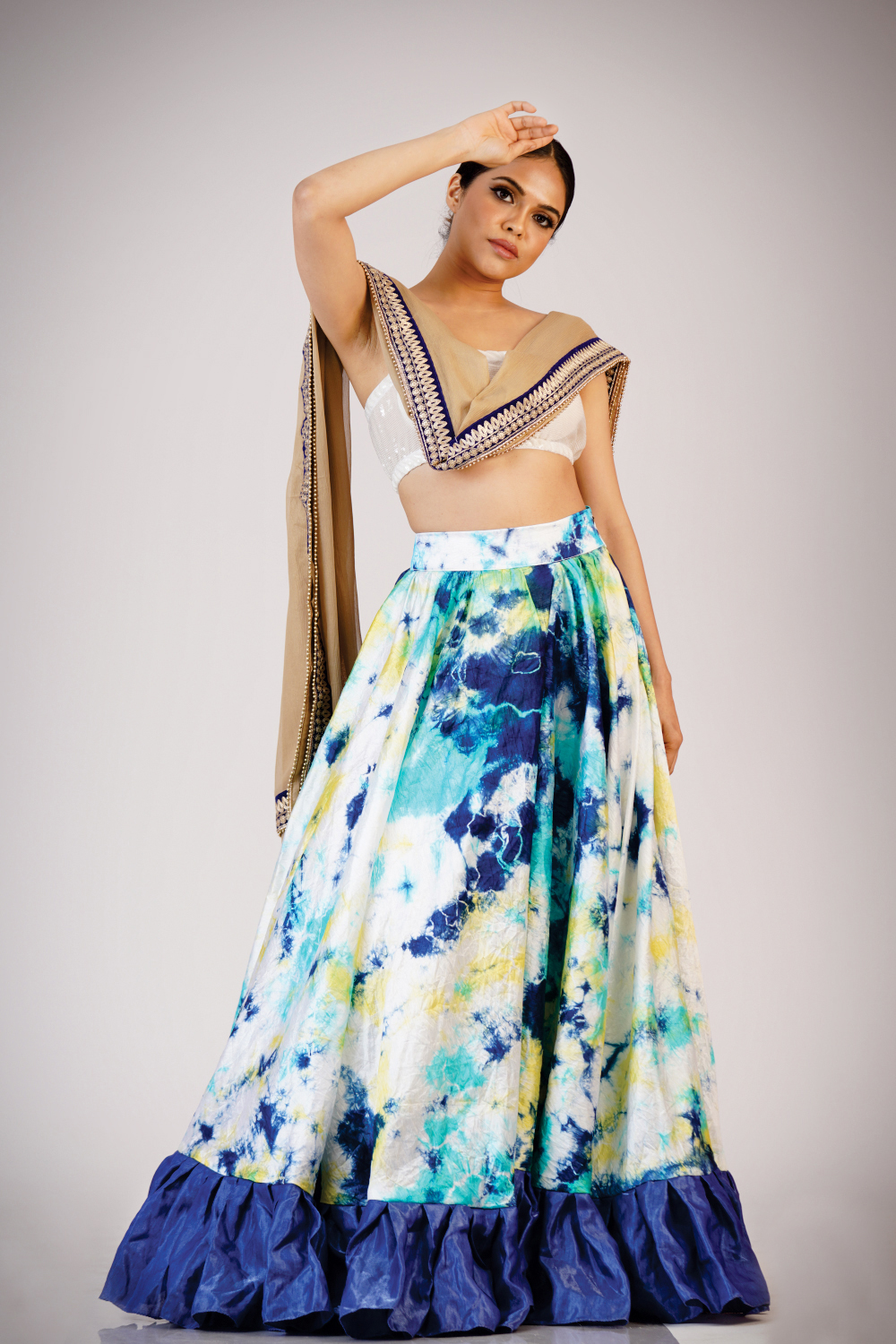Tie and dye Ruffel bordered Lehnga with crop choli