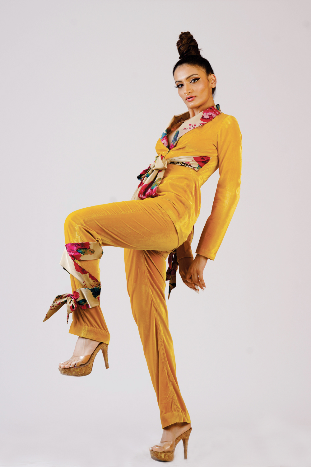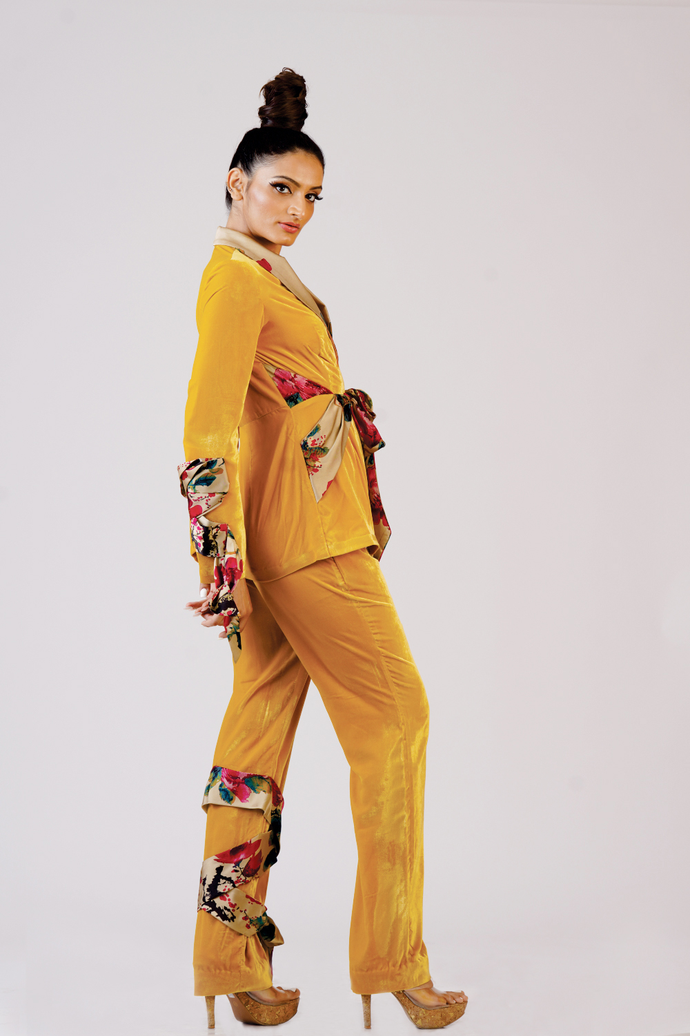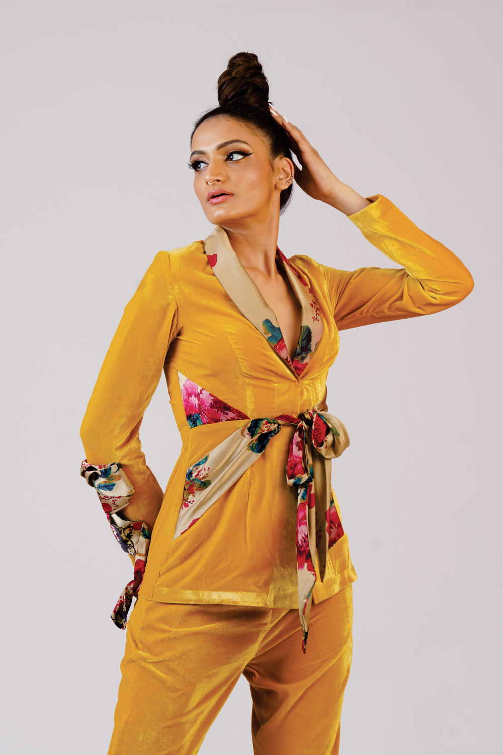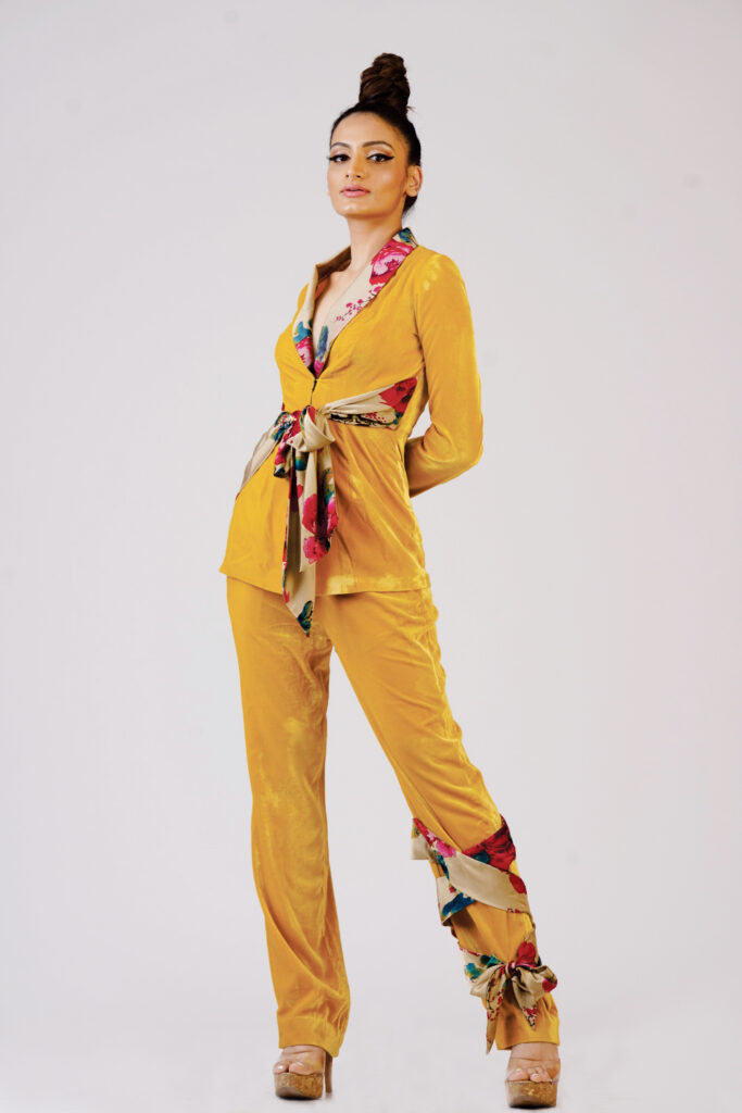 Valvet coat with trouser added with belt