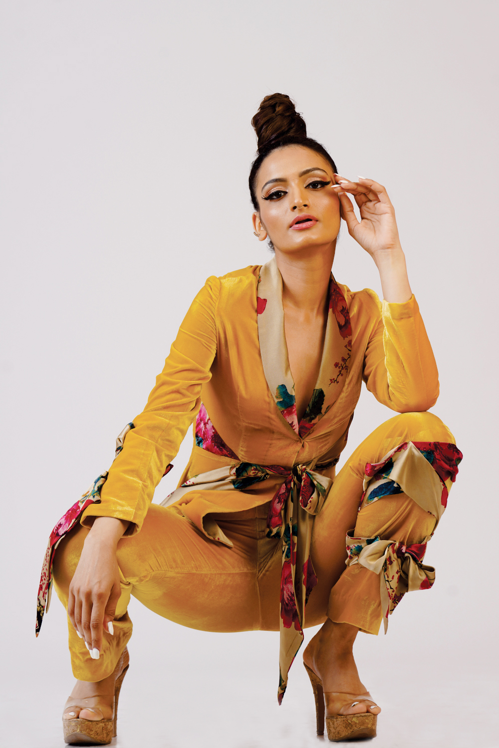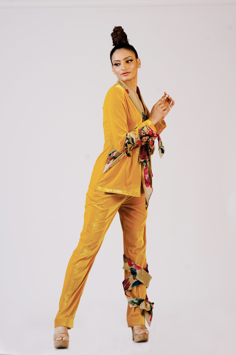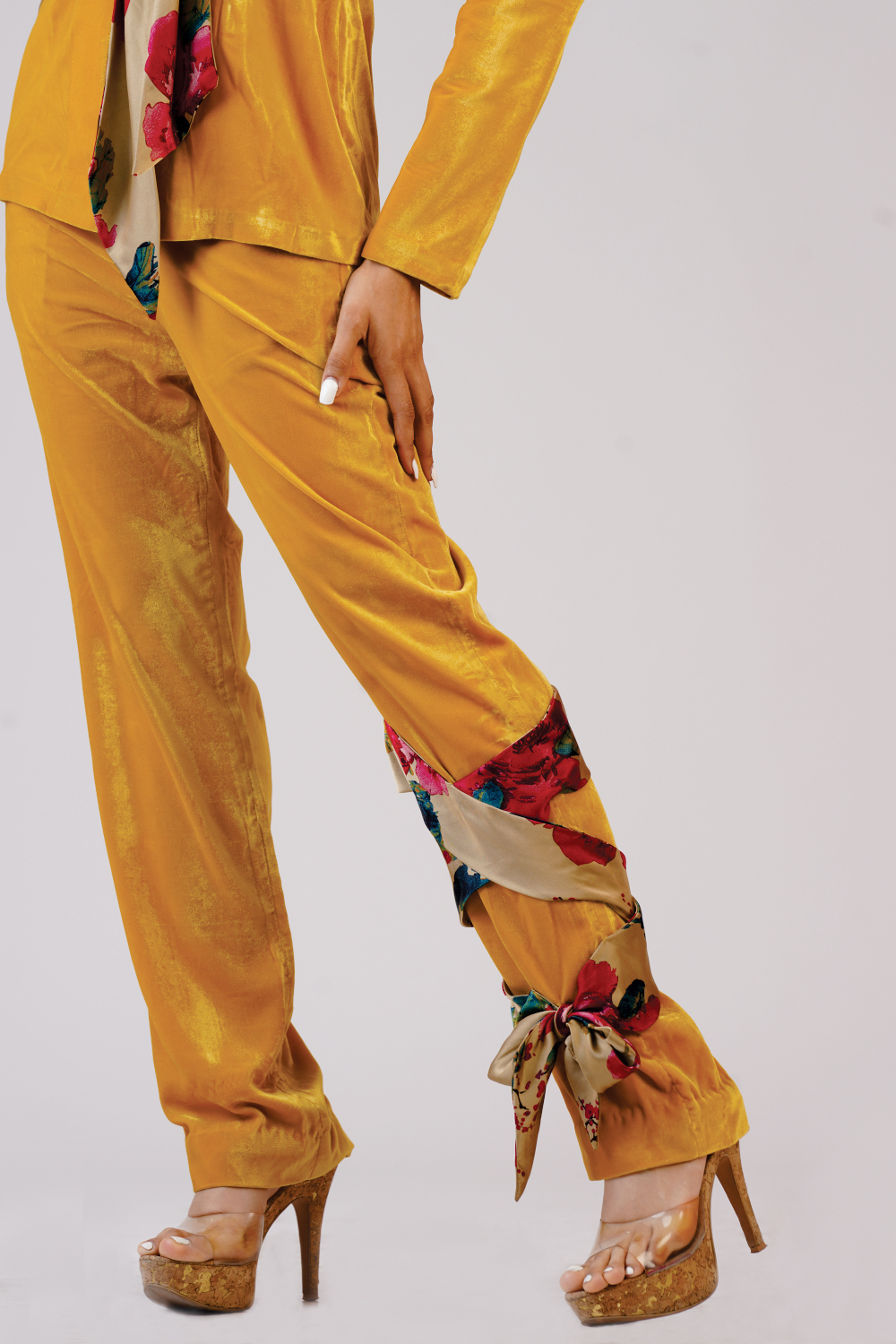 Valvet coat with trouser added with belt